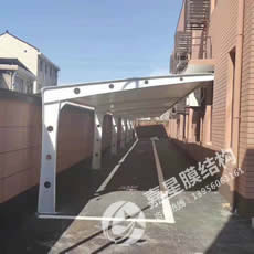 六安膜結(jié)構(gòu)車棚順利完工 六安膜結(jié)構(gòu)車棚工程位于安徽省六安市,建筑面積430平方,合同工期15天。考慮到造型和實(shí)際功能需求,我司將本工程設(shè)計(jì)成凸弧梁?jiǎn)翁糗嚺铮芸诟叨?.7米,工程完工后,客戶非常滿意。 + 查看詳細(xì) |